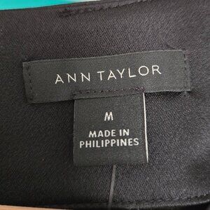 NWT Ann Taylor Satin Top Women's Black Short Sleeve Keyhole Button Back Dressy.
