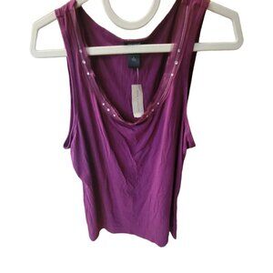 NWT Ann Taylor Scoop Neck Rhinestone Embellished Tank Top Purple Size XL