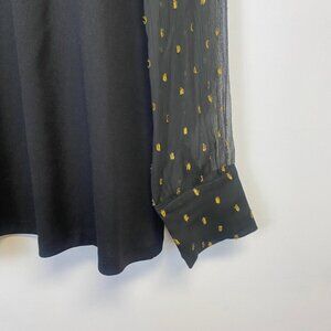 Black blouse with sheer sleeves and gold detail