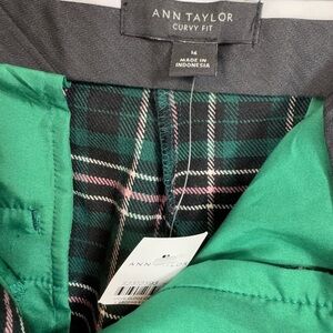 NWT Ann Taylor Size 14 Ankle Dress Pants Tartan Plaid Curvy Fit High Rise Green