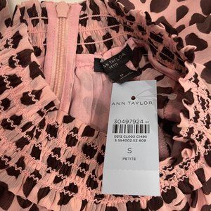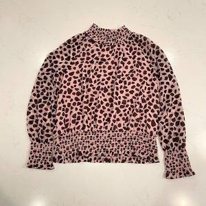 NWT Ann Taylor : Smocked Neck + Waist : Long Sleeve Top: Giraffe Print Pink : PS