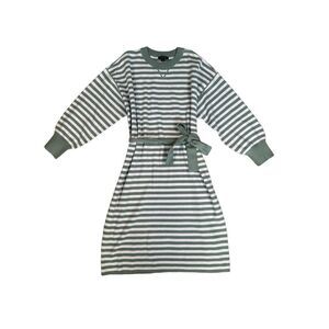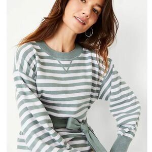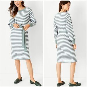 NWT Ann Taylor Striped Belted Sweater Midi Dress Seafoam/White XXL Long Sleeve