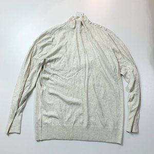NWT Ann Taylor Sweater Shoulder Button Turtleneck Knit Neutral Oatmeal Mock XXL