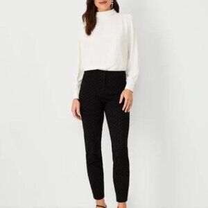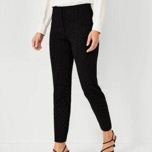 NWT Ann Taylor The High Waist Slim Ankle Pant In Velvet Dot Ponte Black, Size 12