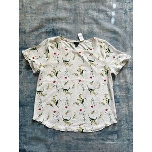 NWT! Ann Taylor White Red Yellow Green Floral Print Flutter Sleeve Blouse Large