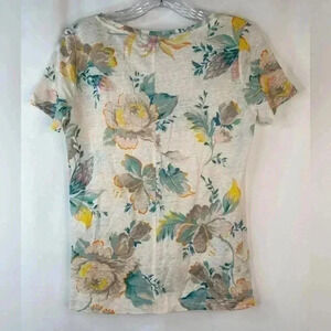 NWT Ann Taylor Women’s Scoop Neck Pure Linen Sunday Tee Tropical Print Size XS