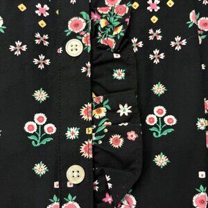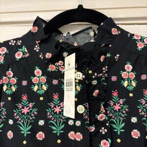 NWT Ann Taylor Womens Top Ruffle Floral Boho Feminine Cottage Whimsigoth Black L