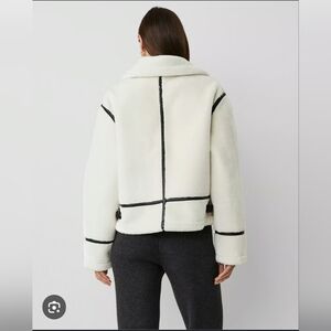 NWT Ann Taylor Zip Front Shearling Collar Moto Jacket Size XXS/P In Winter White