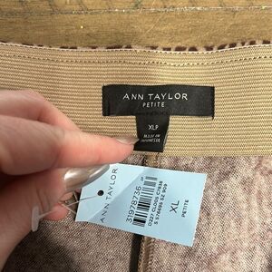 New with tags, smoke-free. Ann Taylor size XL. Petite. Stretchy with stretch. Waistband and zip at the side. Textured leopard print. Measurements in the photos.