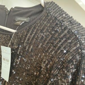 Shine bright: our sequin popover is a season-perfect sparkler. Black Crew neck. Long sleeves. Hidden back zipper with hook-and-eye closure. Lined.