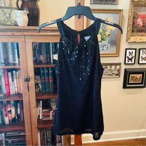 NWT Ann Taylor women’s sequin halter layered tank SZ S black