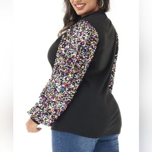 NWT Anna-Kaci Black Top with Rainbow Confetti Sequin Poof Sleeves Size Small. Perfect for a night out or special occasion.
