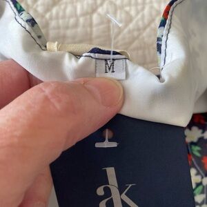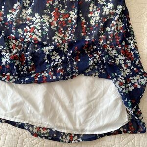 NWT Anna Kaci California size M navy and red and white floral dress for warm Weather. The dress is knee length, fit and flare with elastic waist, tiered, and ruffled cap sleeves. Boho, country and whimsygoth all at once. Fully lined. See photos for condition and measurements. Tags are still on it.