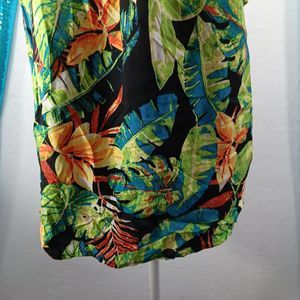 NWT Anne Carson Women's Size M Tropical Floral Summer Blouse Flutter Sleeves