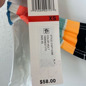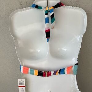 Love the great colors and print on this classic bikini top by Ann Cole. Mix and match with your favorite bottoms.