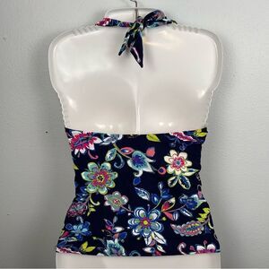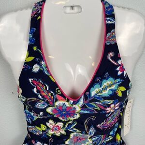 Beautiful colors and floral print on this classic tankini top. Mixing match with your favorite bottoms or jean shorts.