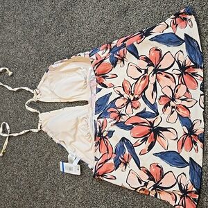 NWT Anne Cole Studio High Neck Floral Halter Tankini Top Swim Bikini Sz XL