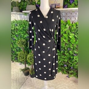 NWT Anne Klein Black Dress with White Polka Dots Women’s Medium Wrap Stretchy