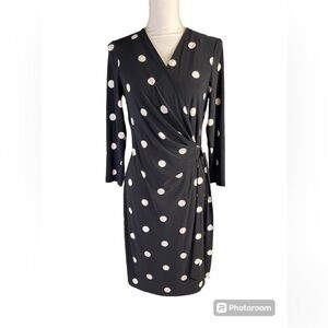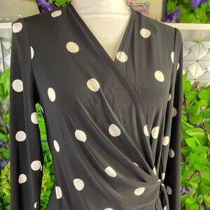 NWT Anne Klein Black Dress with White Polka Dots Women’s Medium Wrap Stretchy