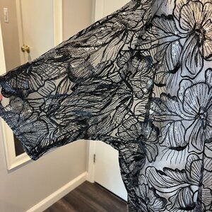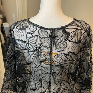 NWT Anne Klein Black Oversized Sheer Cardigan with Sequins, Size S/M