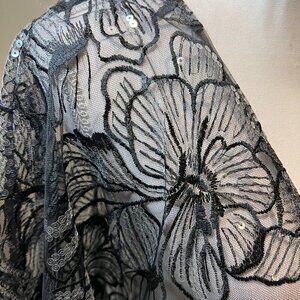 Anne Klein Black Oversized Sheer Cardigan with Sequins, Size S/M