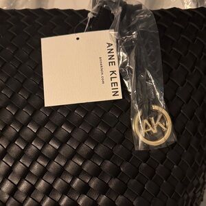 NWT Anne Klein Black Woven Tote smooth woven tote bag