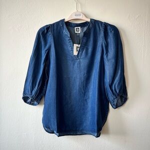 NWT Anne Klein Blue Puff Sleeve Blouse | Size XS