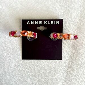 NWT Anne Klein Gold Tone Pink Multi Stone C Hoop Earrings. Women’s OS.