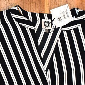 NWT Anne Klein Plus Size Split Neck Striped Blouse Sz 1X Anne Black/Zinc Combo