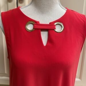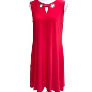 NWT Anne Klein Sleeveless Shift Dress Size Small in Tomato Red. This dress is stylish and versatile, the kind of piece that'll carry you to so many occasions. Oversized Gold Grommet details accessorize the neckline. Length just above the knee. Approximate measurements in photos. Excellent new condition.
