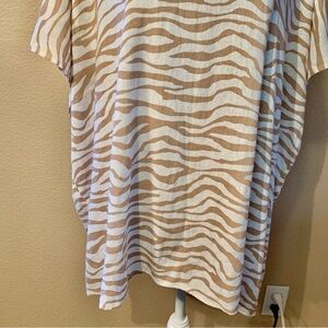 NWT Anne Klein Tunic Top XL Linen Blend White Tan Animal Print V-Neck