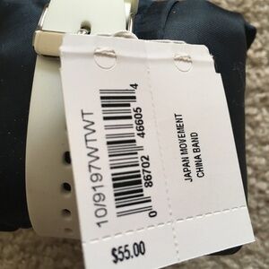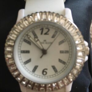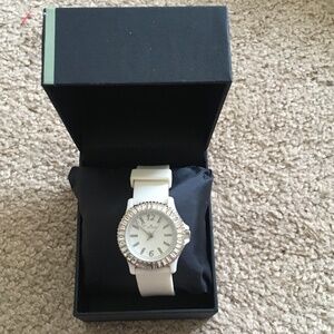 This Anne Klein watch is new with tags. The battery needs to be replaced but it has never been worn. Comes with the original box and pillow. The wristband is adjustable.