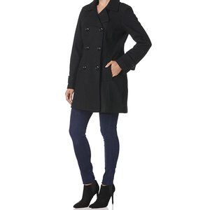 NWT Anne Klein Women's Classic Double-Breasted Coat Size S, Black, $200 3D33