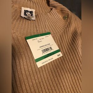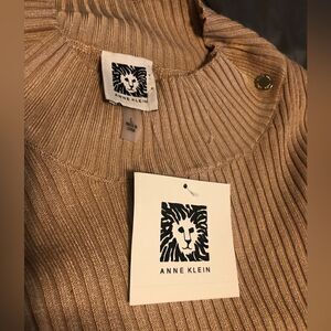 NWT Anne Klein Women’s Long Sleeves Sweater Khaki Caramel Large Tan Gold Buttons