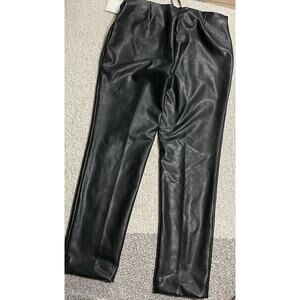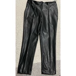 NWT Anne Klein Women's Size Large Seamed Pull-On Faux Leather Pants Black