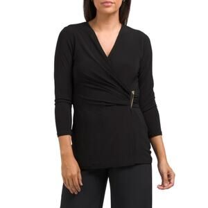 NWT Anne Klein Women's V-Neck Three Quarter Sleeve Faux Wrap Top Blouse