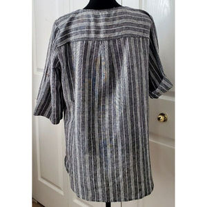 NWT Anne Klein Women's White Gray Linen Tunic 1/4 Zip Roll Tab Sleeve Top Sz M. MSRP $89