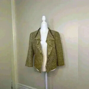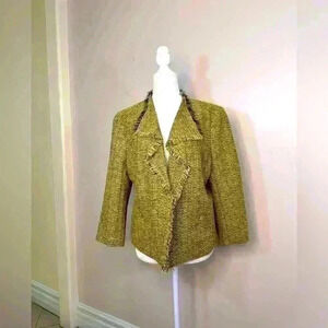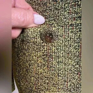NWT Anne Klein Tweed Jacket. Buttons still have a plastic protective cover. The color is a subtle chartreuse. Pit to pit 22” length 23” sleeves 3/4 18” length