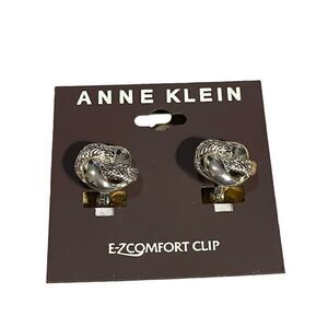 NWT Anne Klein Silver-Tone Etched Knot Clip-on Earrings