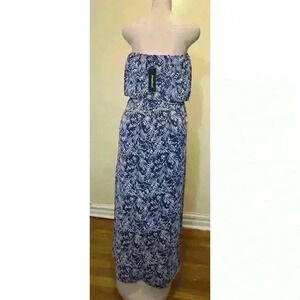 Very pretty dress, new with tag. Short lined construction. Elastic band under the draped bodice.