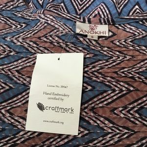 NWT Anokhi 100% cotton hand embroidered zig zag print coverup. The item has two slits on each side and 3/4 length sleeves.