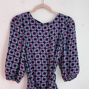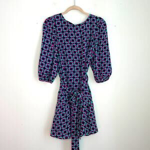 NWT Anonyme keyhole back blouson sleeve belted print dress sz M