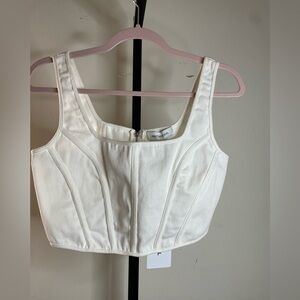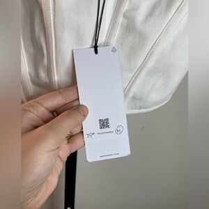 The new Cut Work Corset from Another Girl is a stunning addition to your wardrobe. Featuring a square neckline, piped bodice, and intricate cutwork detail in the back, this corset is made from partially organic stretch cotton that hugs the body, combining style with sustainability.
