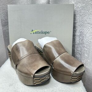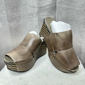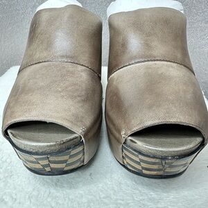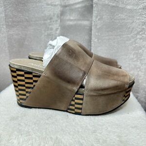 NWT Antelope Gray 869 Open Toe Checkered Wedge Mule Women’s Sz EURO 36/US 5