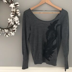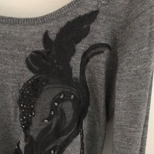 NEW WITH TAGS -- Angel of the north is one of my favorite Anthro brands, and here's one more example why. This beautiful appliqué sweater has a few lovely, subtle black sequins on the appliqué for just a slight hint of sparkle, plus a sweet, simple tie in the back to add one more charming detail to its list. Size XS 24" length by 36" bust. All measurements taken flat and unstretched. ▪️Box A