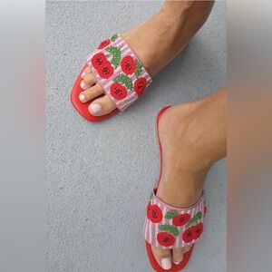 NWT Anthro x Maeve Cherry Beaded Slide Sandals 🍒