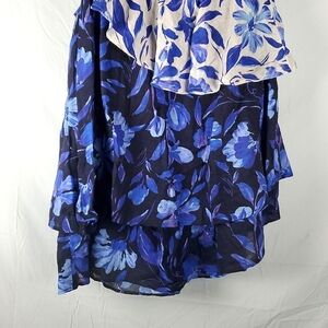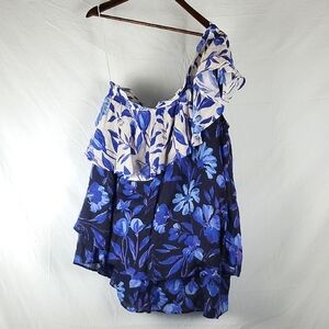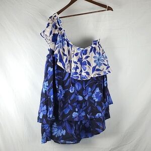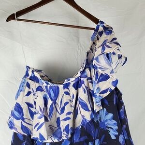 New With Tags Anthropologie Floral One Shoulder Ruffle Dress in Blue Motif. Mini length. Great condition. Size large.