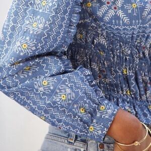 NWT Anthro Forever That Girl Embroidered Smocked Blouse