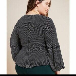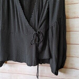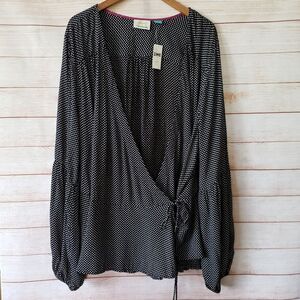 NWT Anthro Maeve Ingrid Polka Dot Wrap Front Tie Long Sleeve Top/Blouse