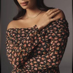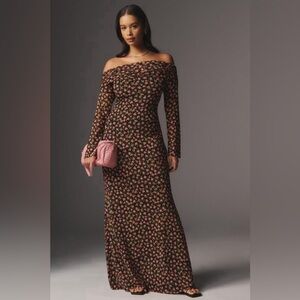 NWT! Anthropologie AFRM Long-Sleeve Off-The-Shoulder Mesh Maxi Dress 🐚